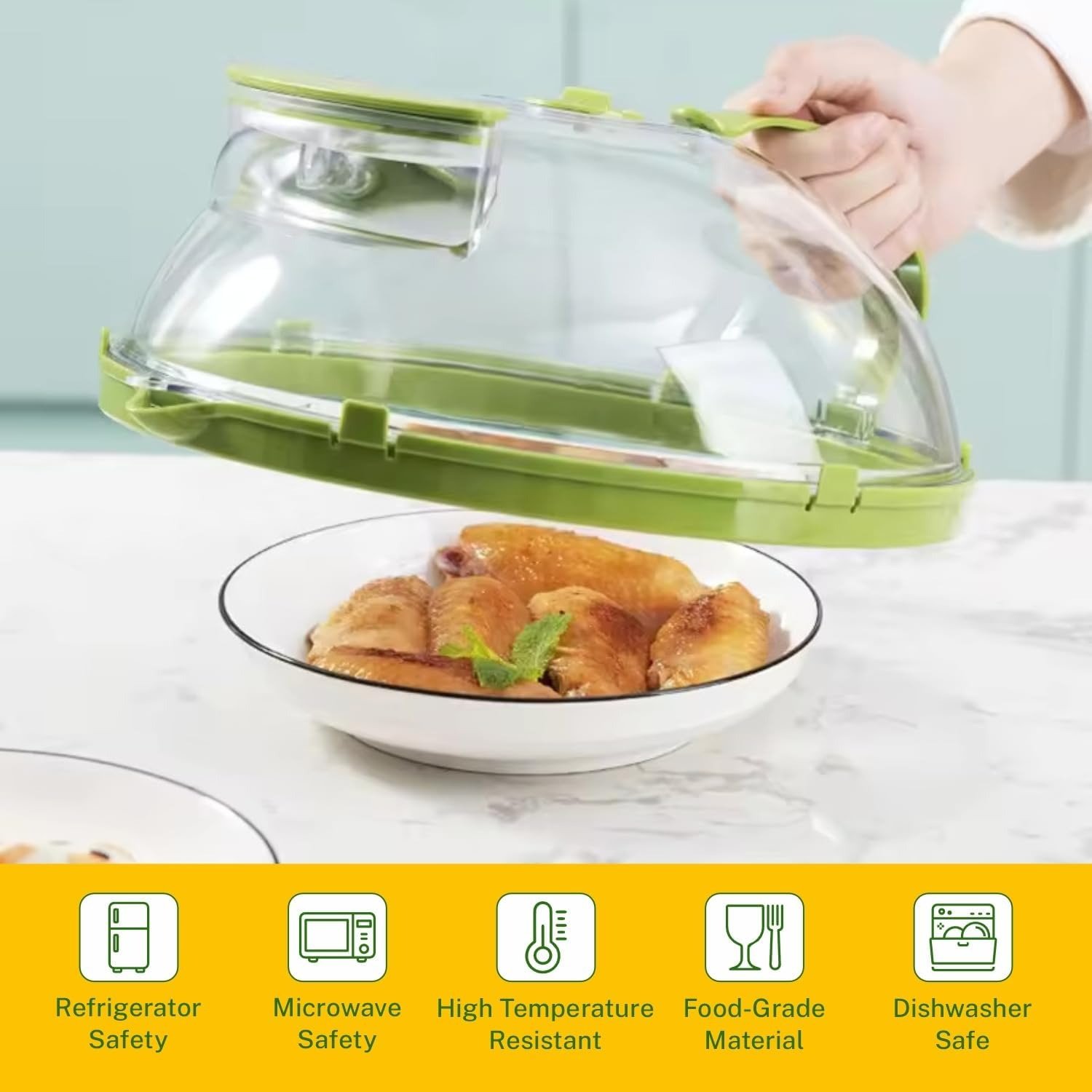 The insulated handle allows you to safely remove the cover after heating, making it easy to move your plate without touching hot surfaces.